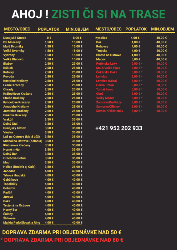 Doručujeme zdarma v Dunajskej Strede a v Gabčíkové. Pre ostatné oblasti uvádzame cenník doručenia nižšie. .
