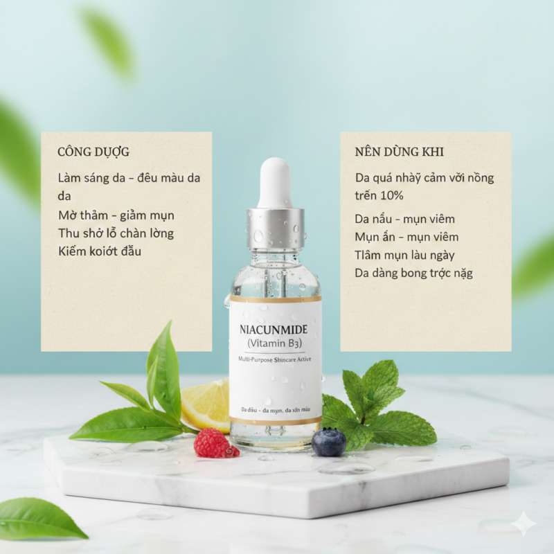 Niacinamide (Vitamin B3) là hoạt chất đa năng được sử dụng rộng rãi trong mỹ phẩm.