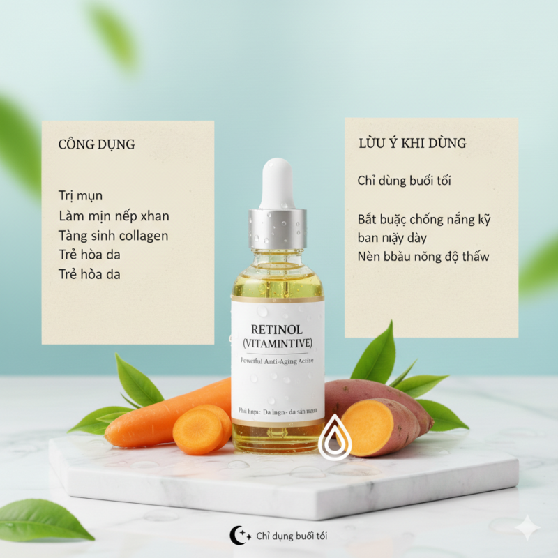 Retinol là dẫn xuất vitamin A – hoạt chất mạnh trong chống lão hóa và trẻ hóa da.
